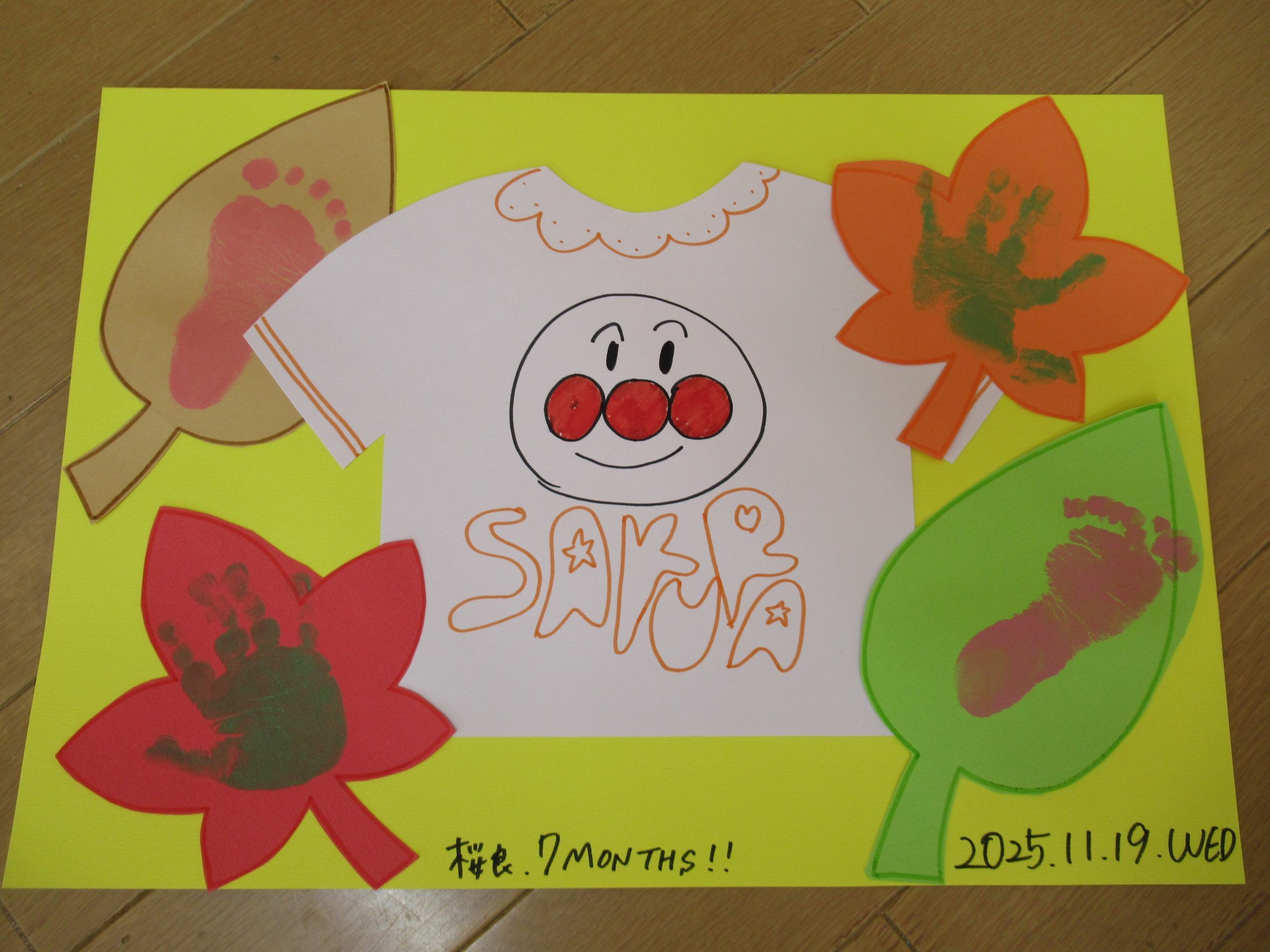 今月の季節の制作は、手形足形で葉っぱの形を作ったりTシャツのデザインを…