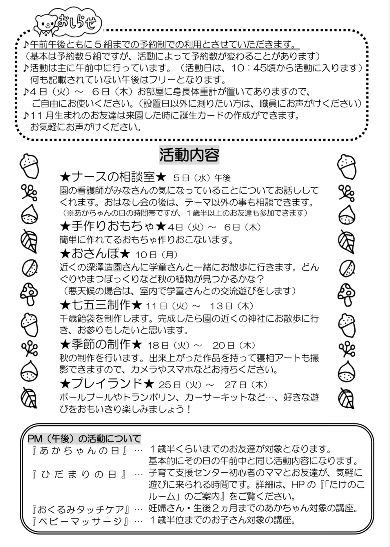 ※12月にクリスマス会を予定しています。参加を希望される方は、11月中に2回以上のご利用をお願いします。
