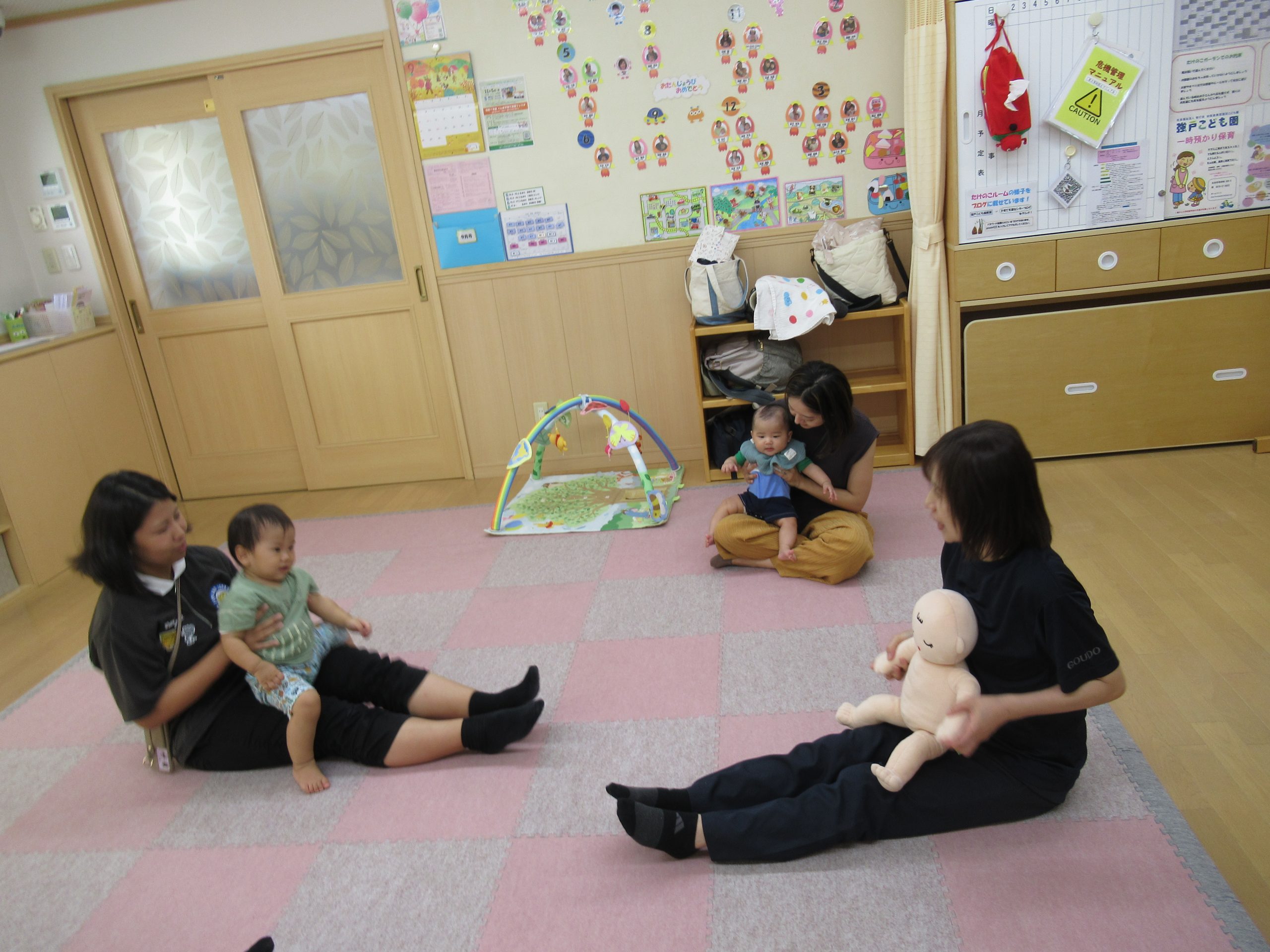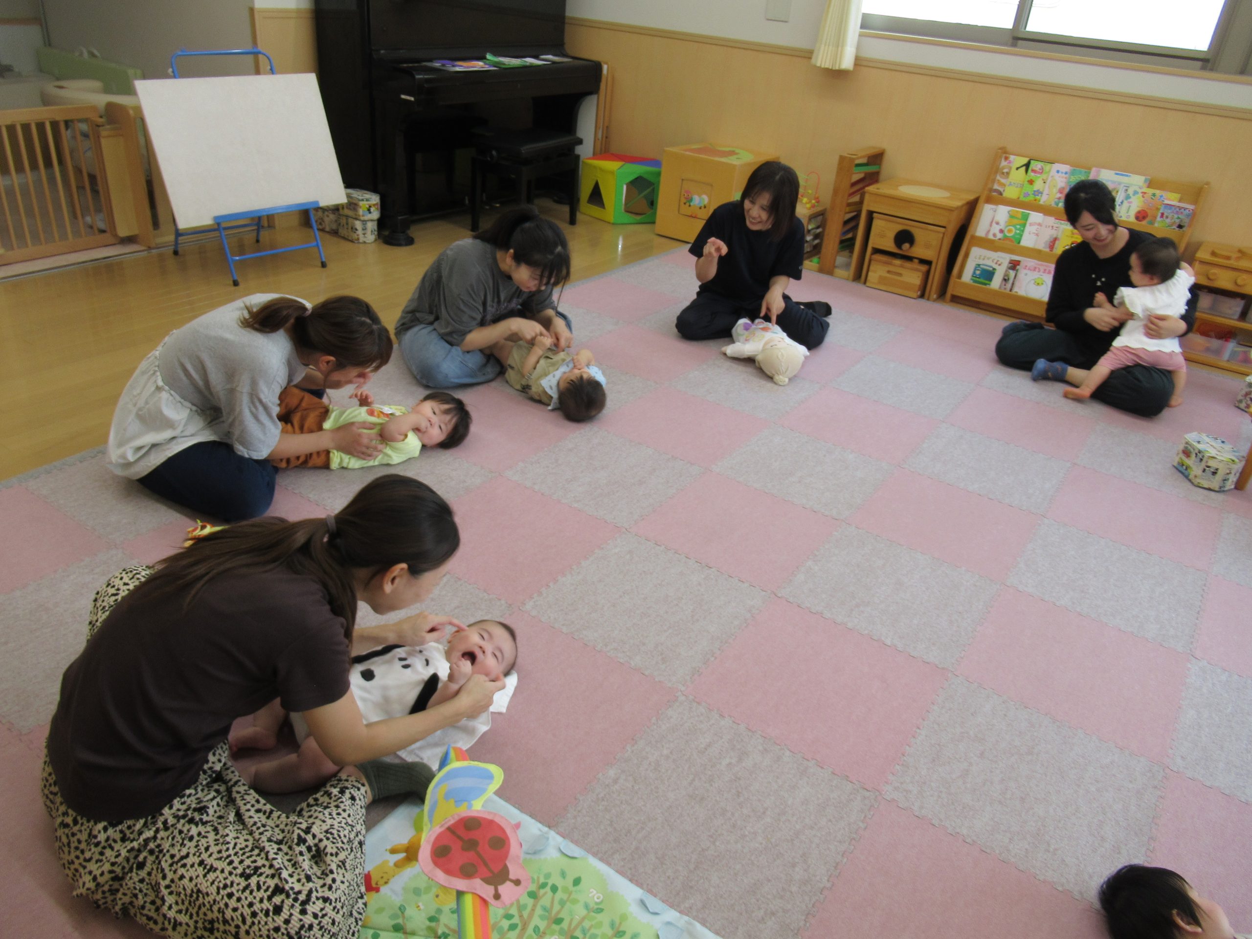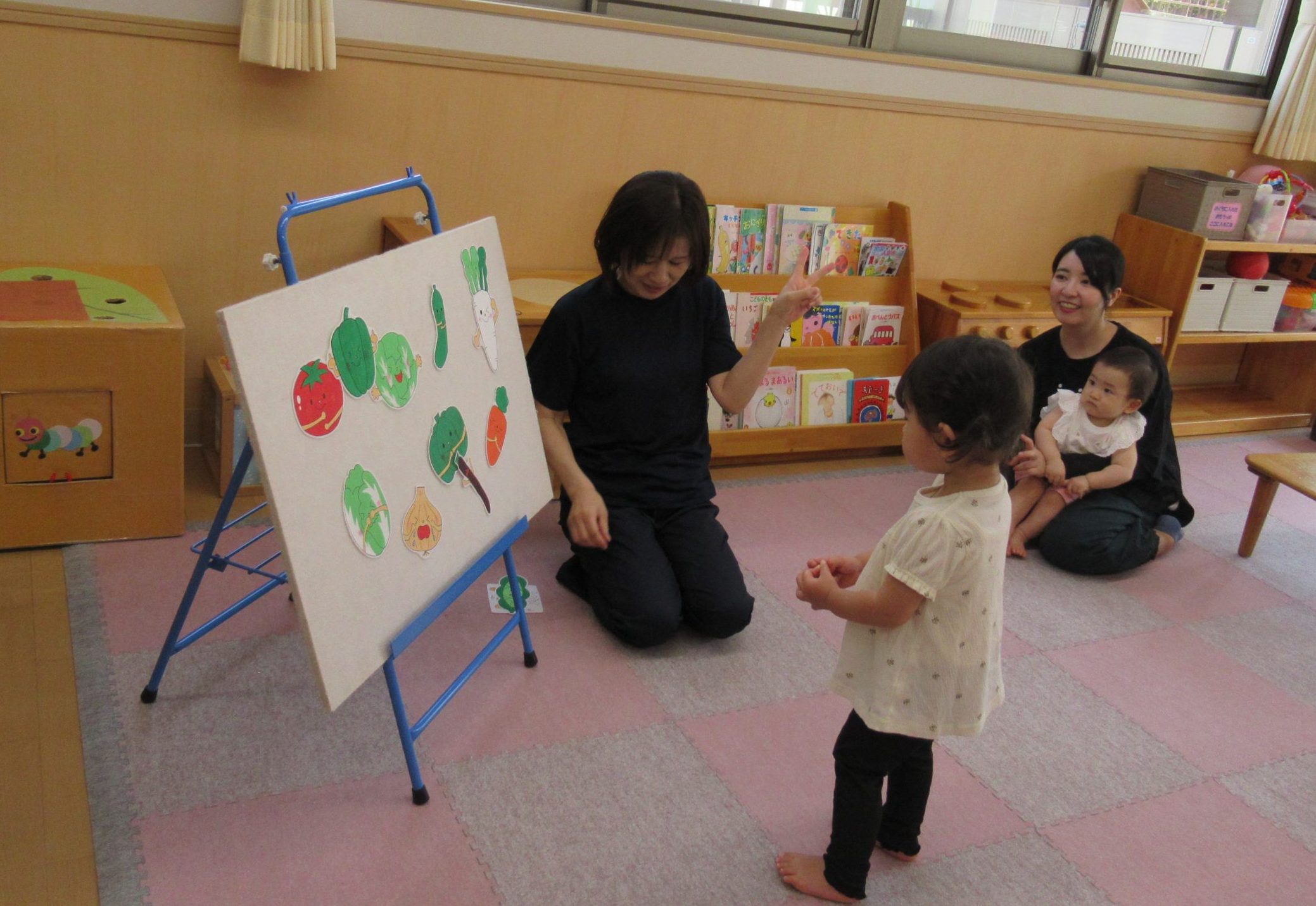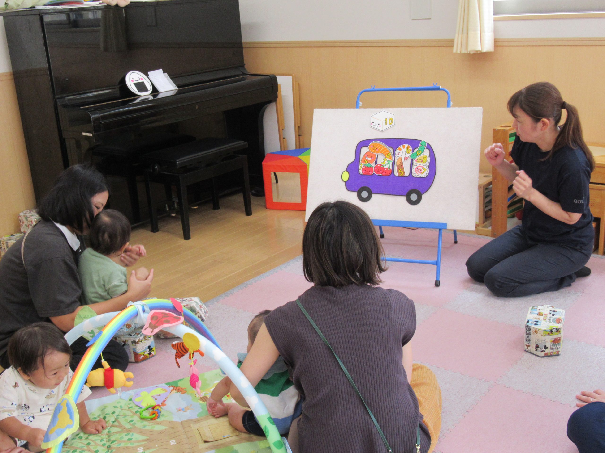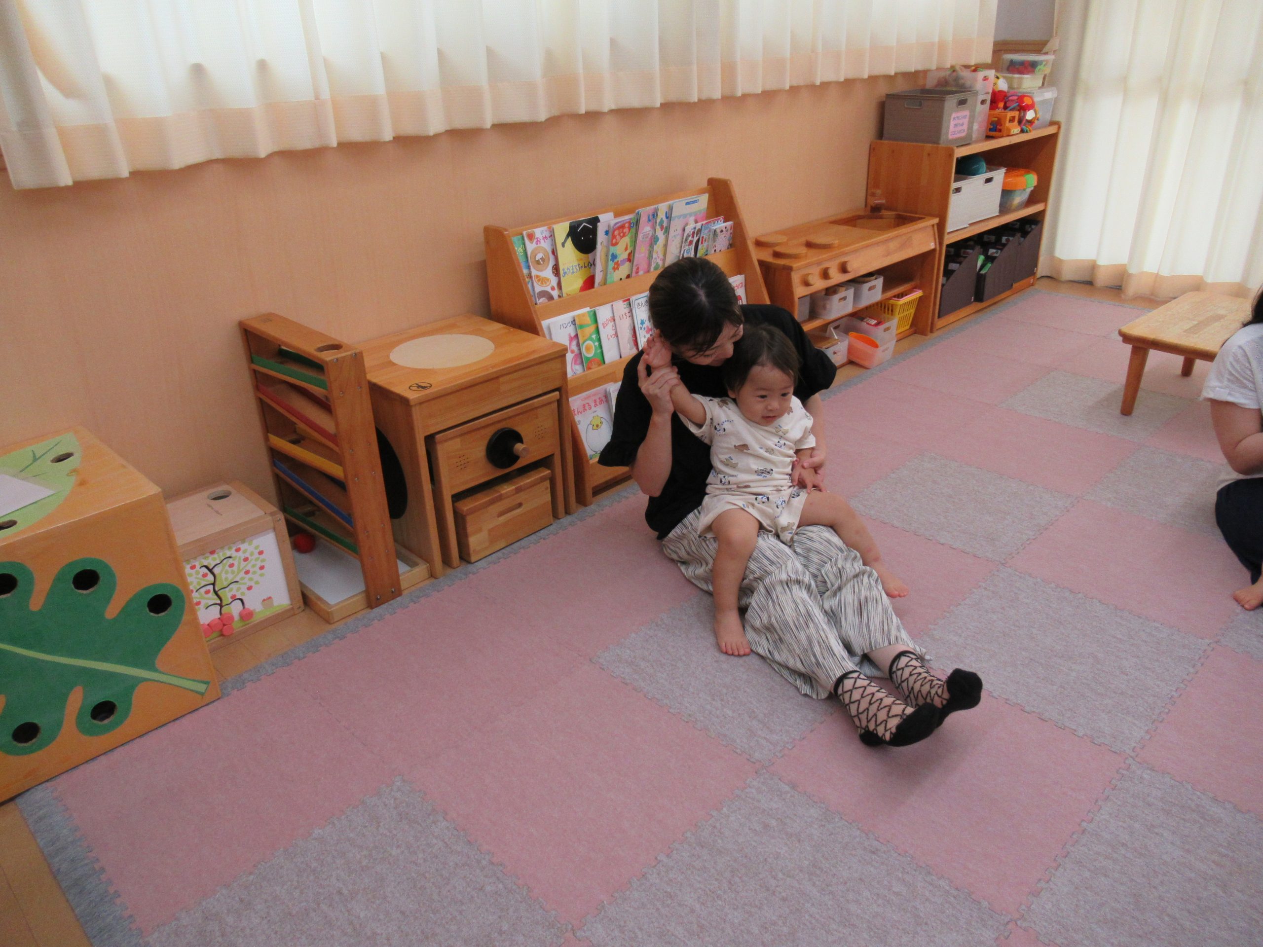 パネルシアターや手遊びをして、ママとのふれあいを楽しみました。