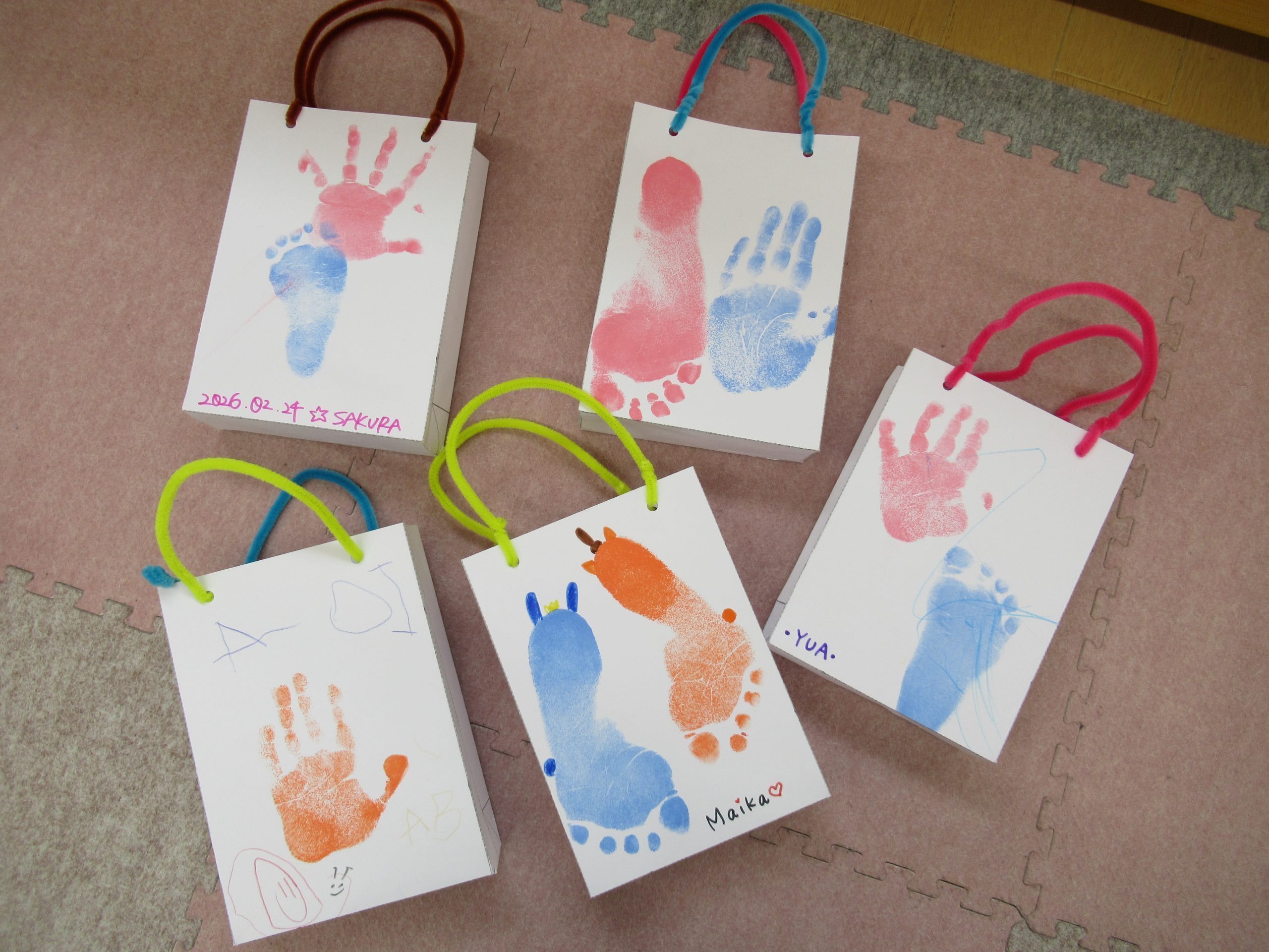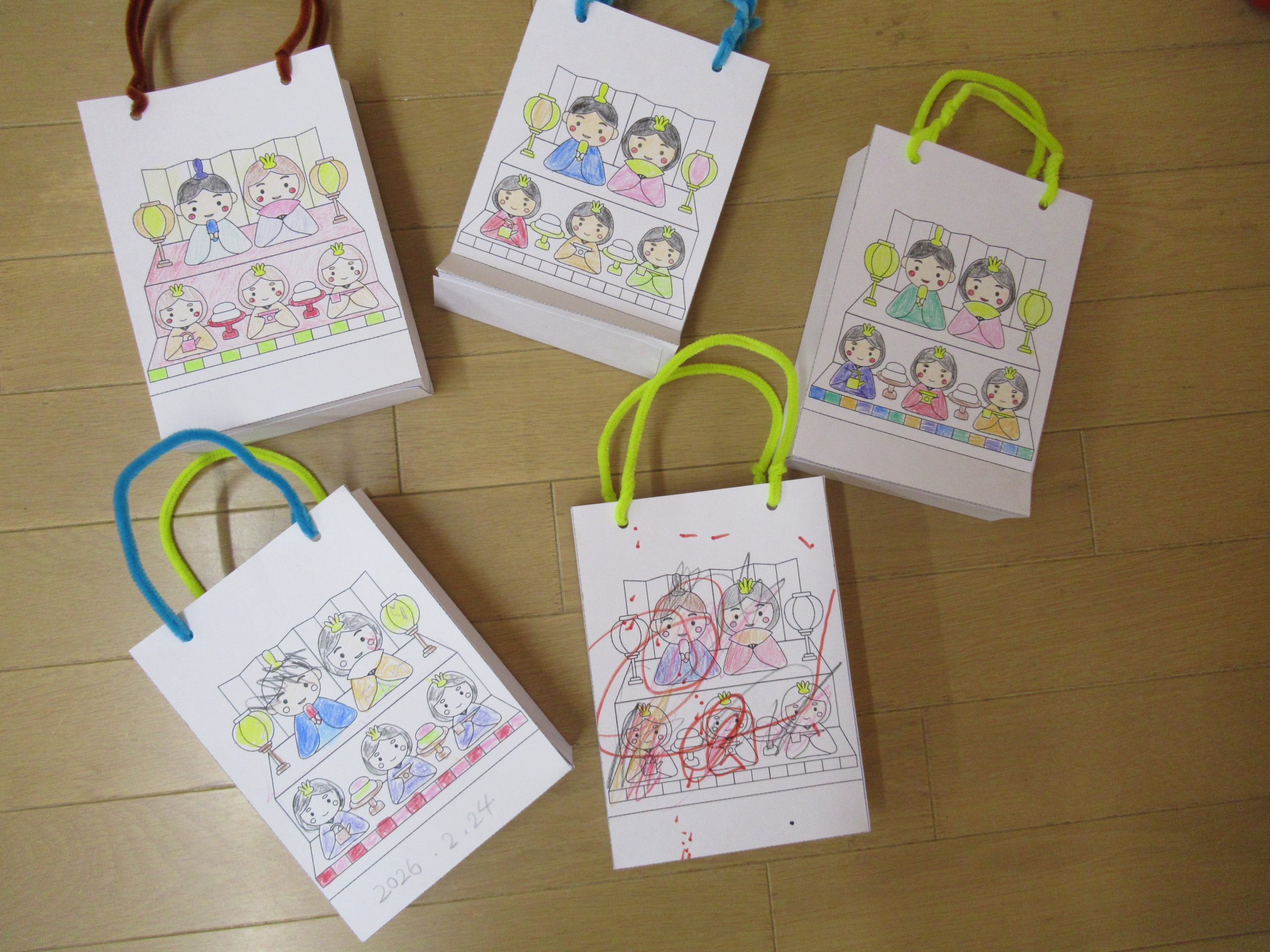 ひなあられを入れる紙バッグ作りをしました。