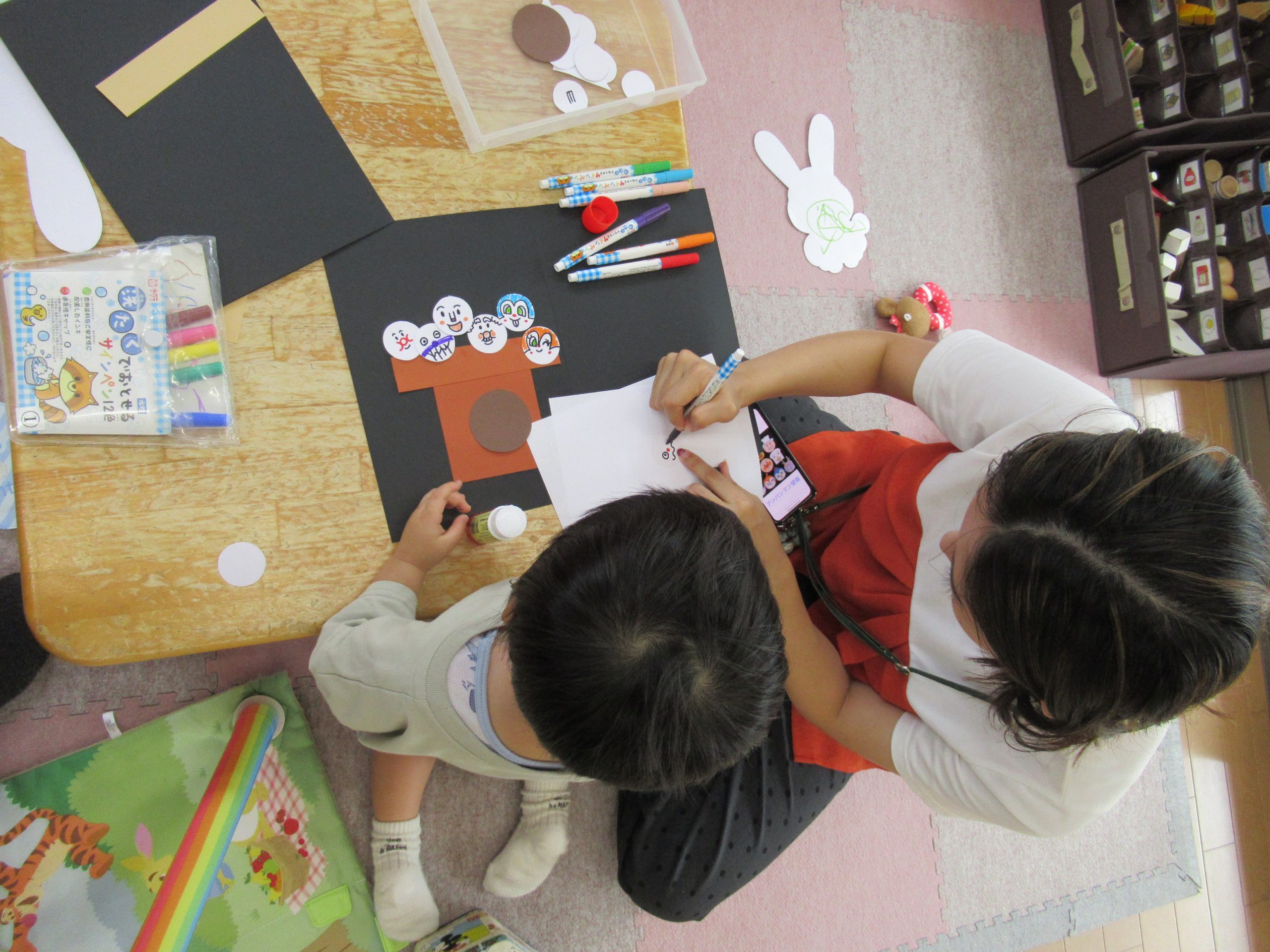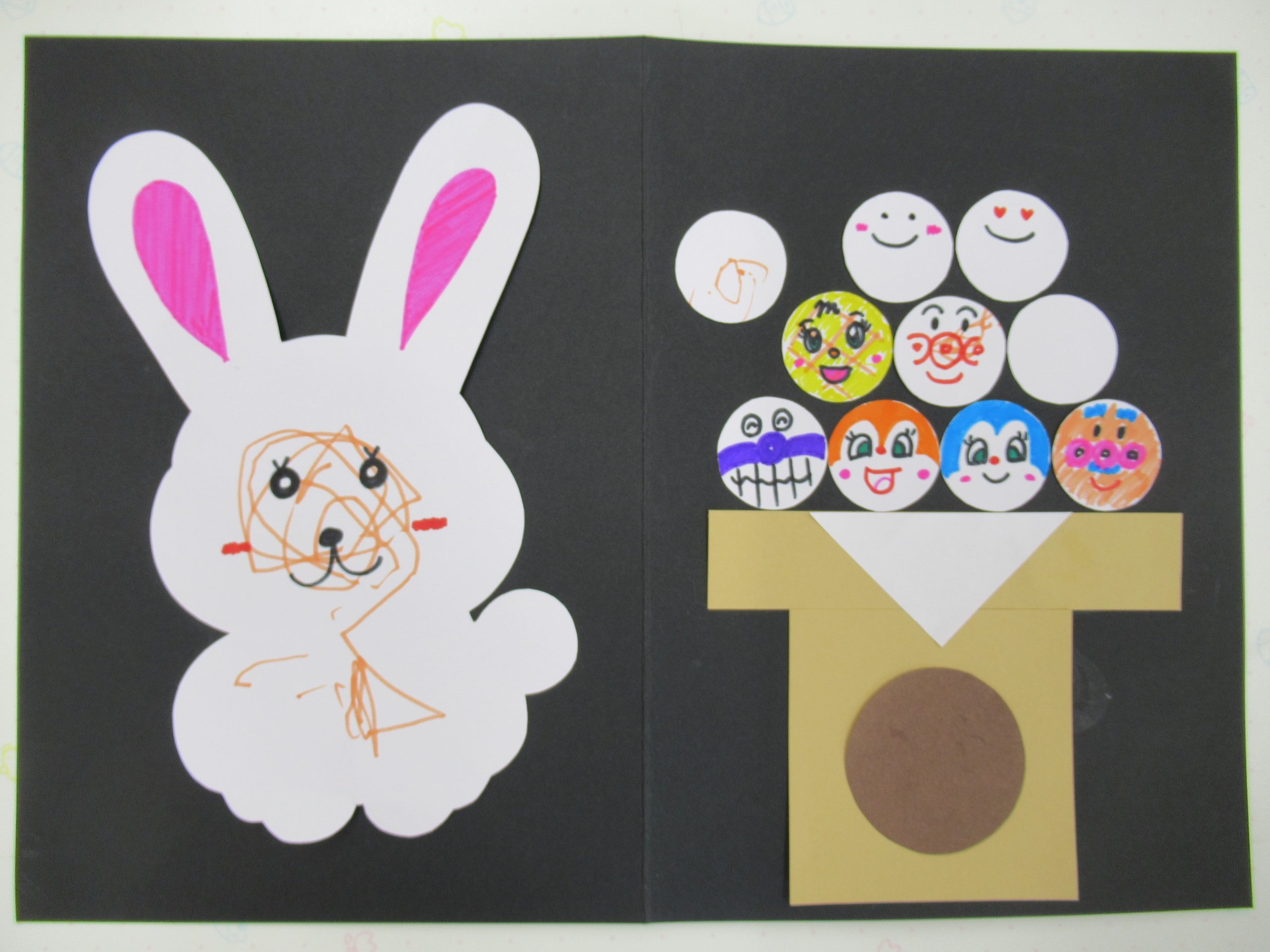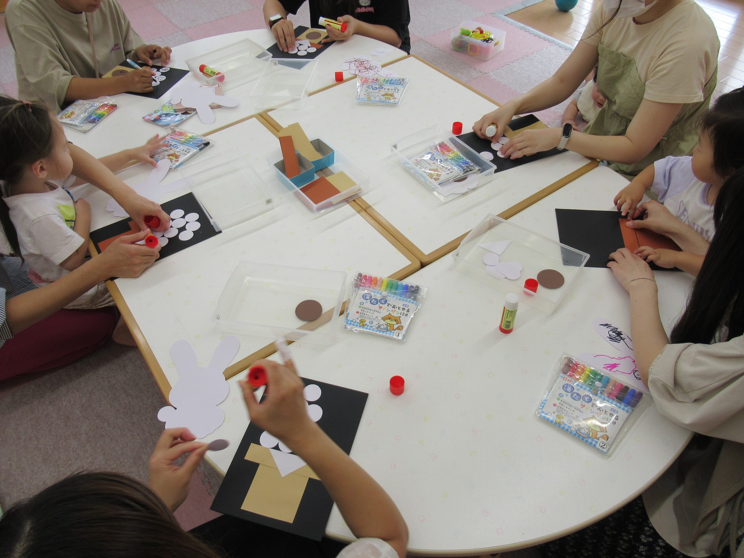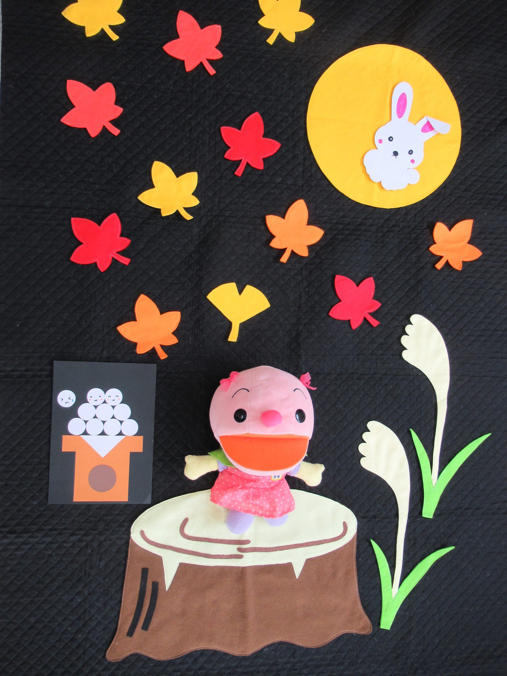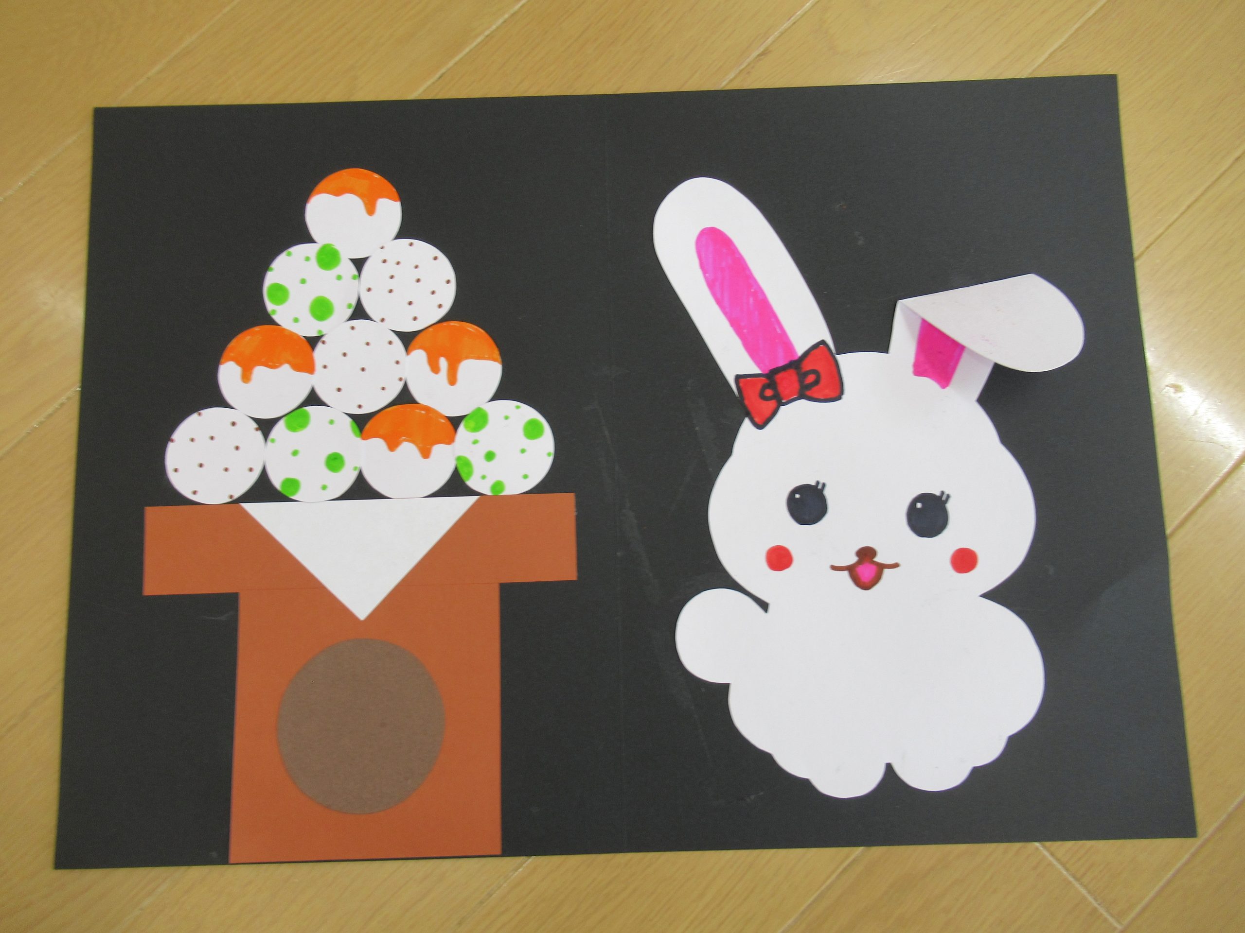 十五夜にちなんでお団子とうさぎの壁面制作をしました。