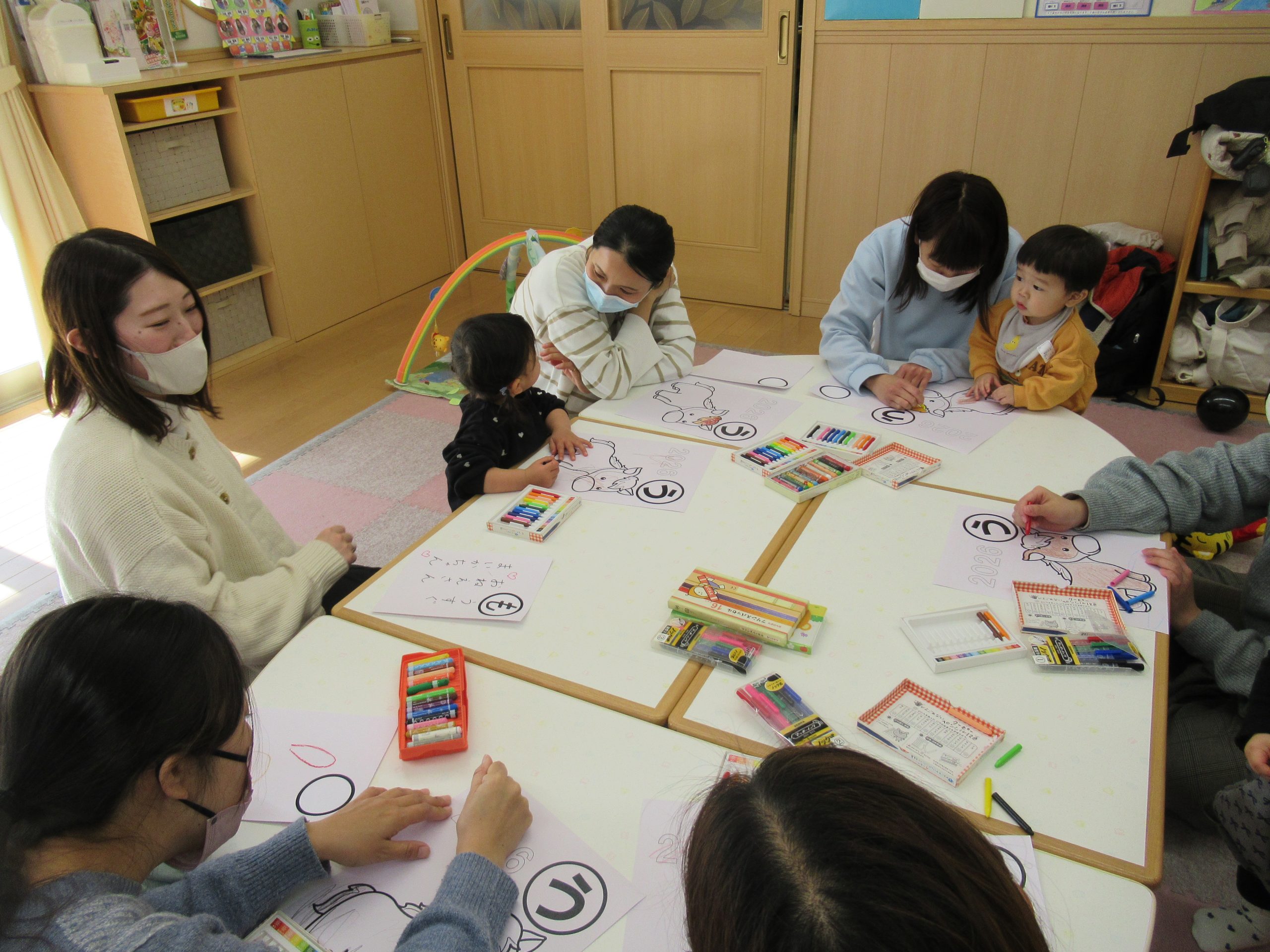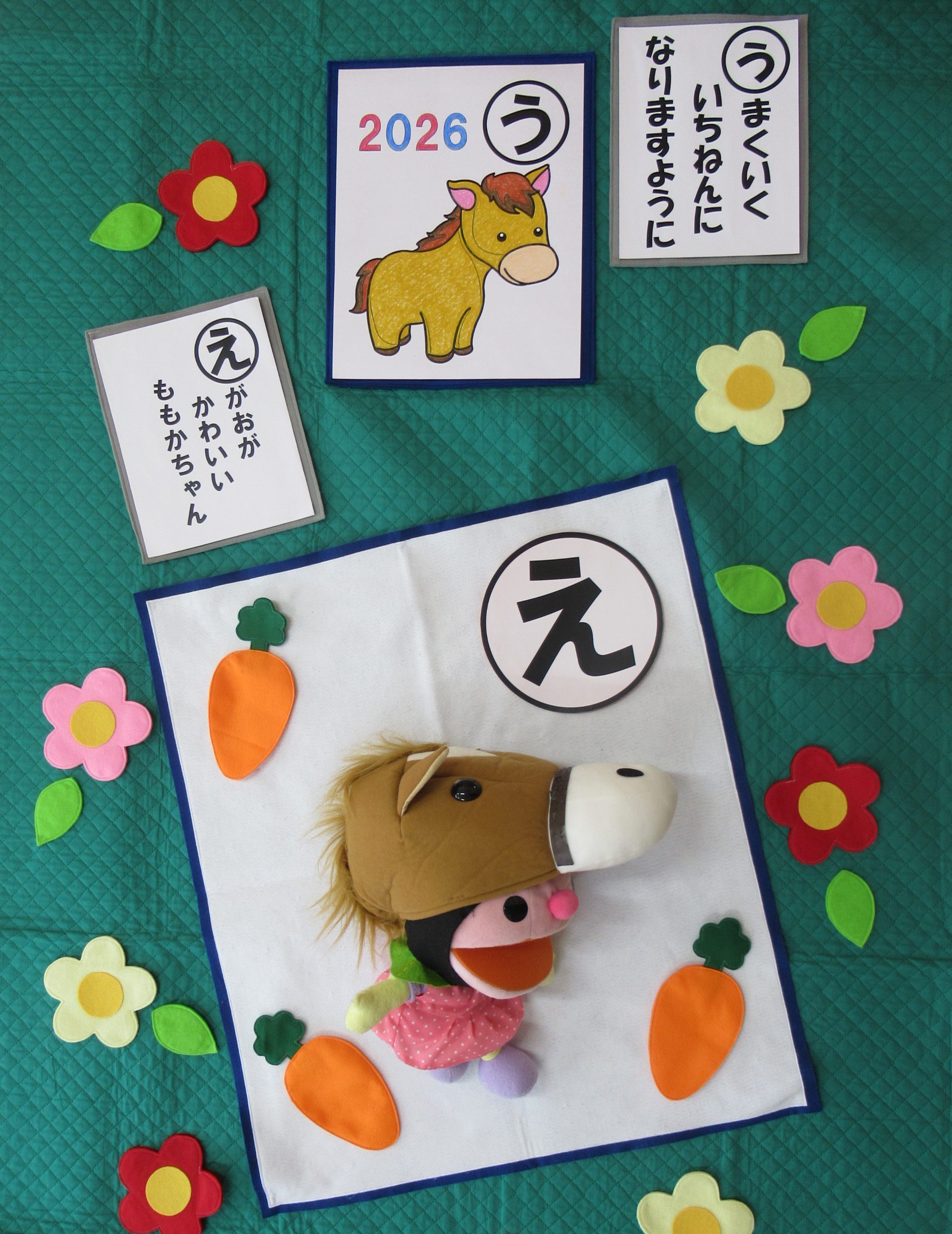 干支の馬のぬりえと読み札を一枚考えて書いてもらいました。
