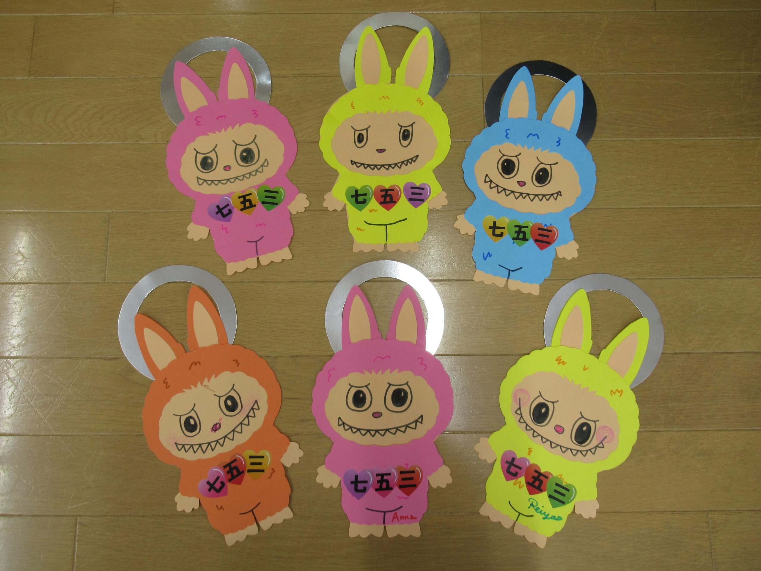 流行りに乗ってラブブの千歳飴袋を作りました。 お土産は、飴ではなく千歳…