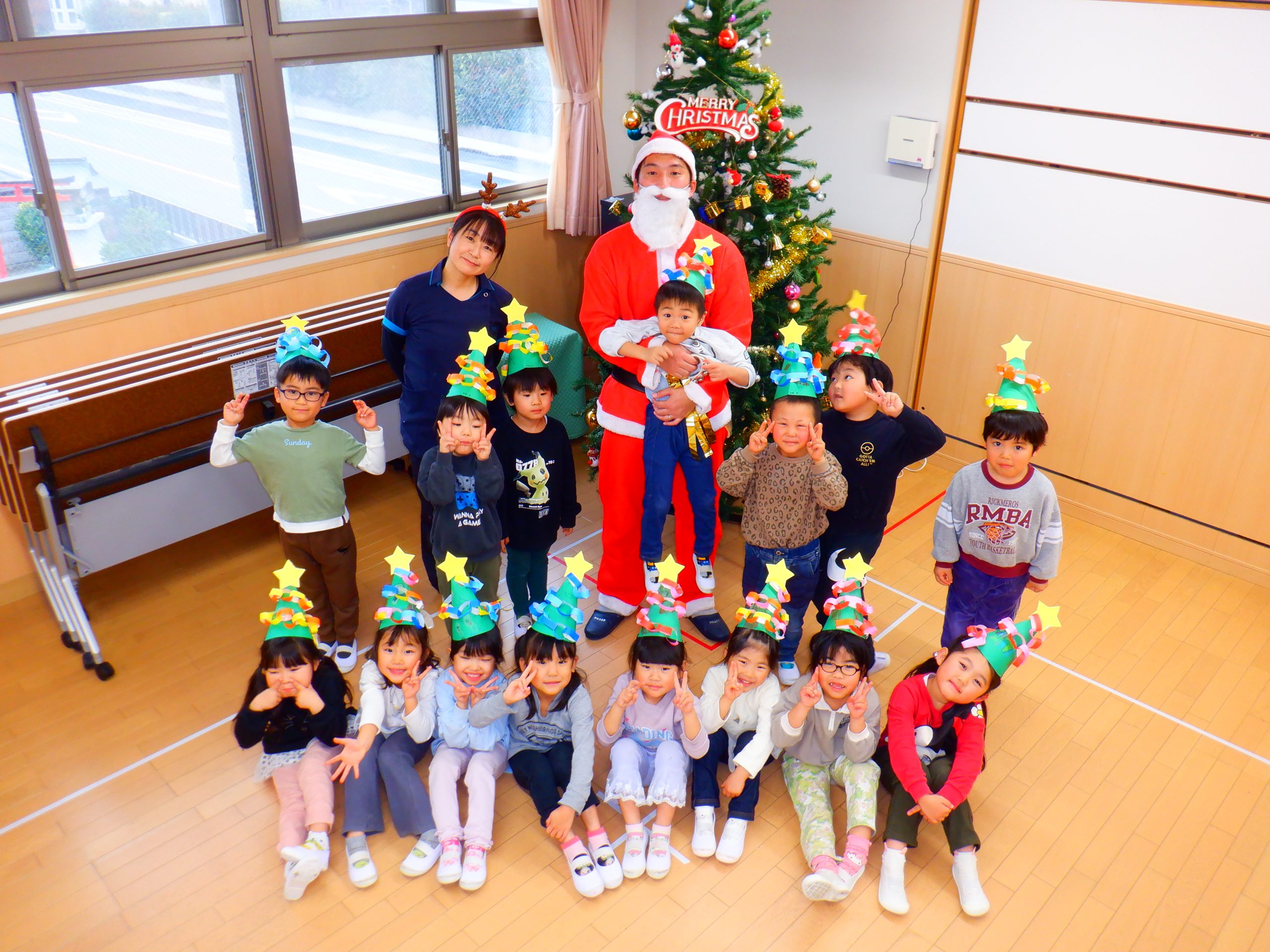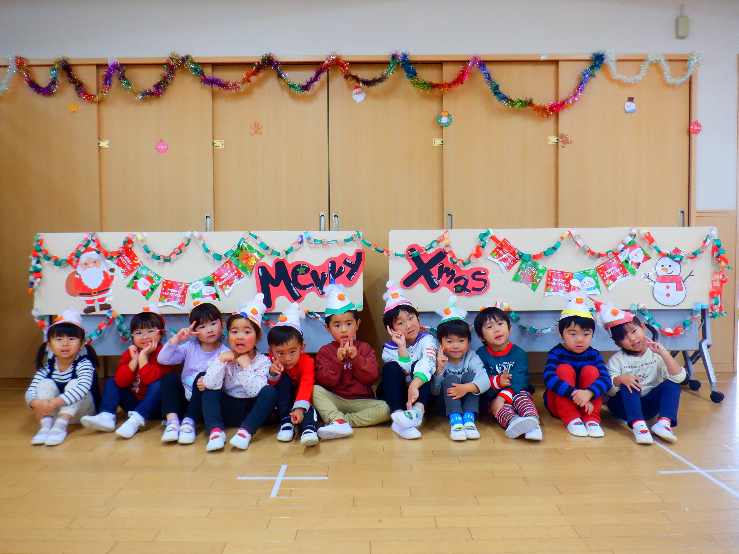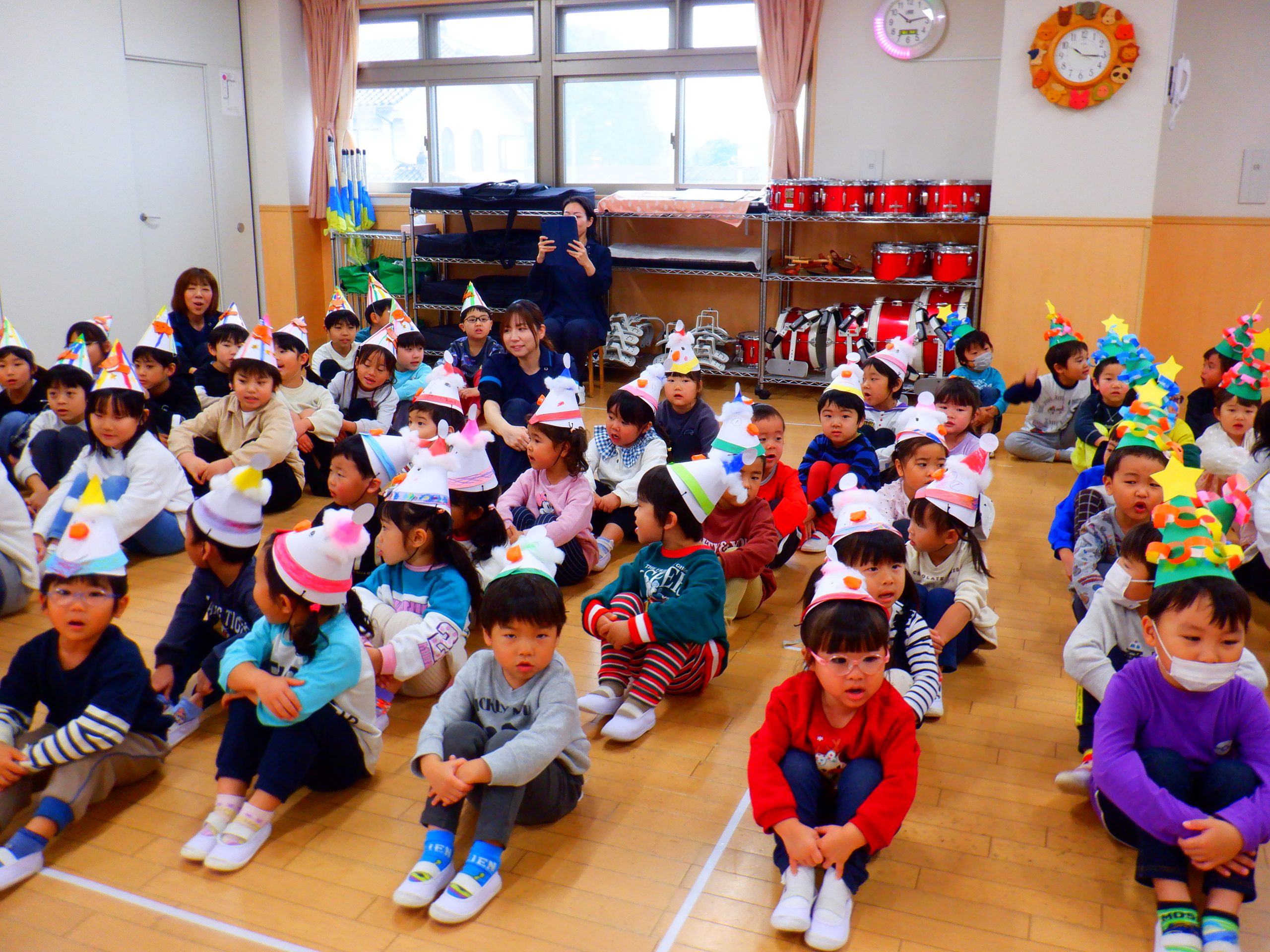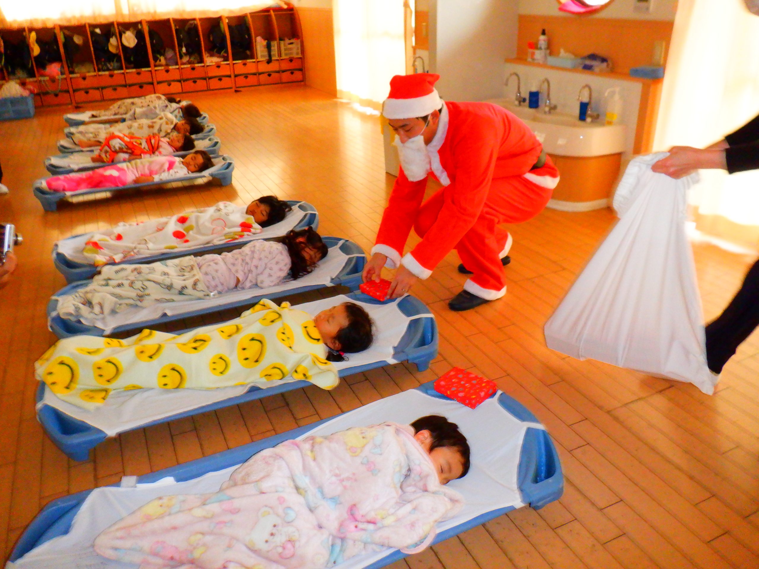 今日は、みんなの楽しみにしていたクリスマス会を行いました。学童さんのダンスや先生のハンドベルなど楽しい催し物の後は、サンタさんからプレゼントをもらいました。