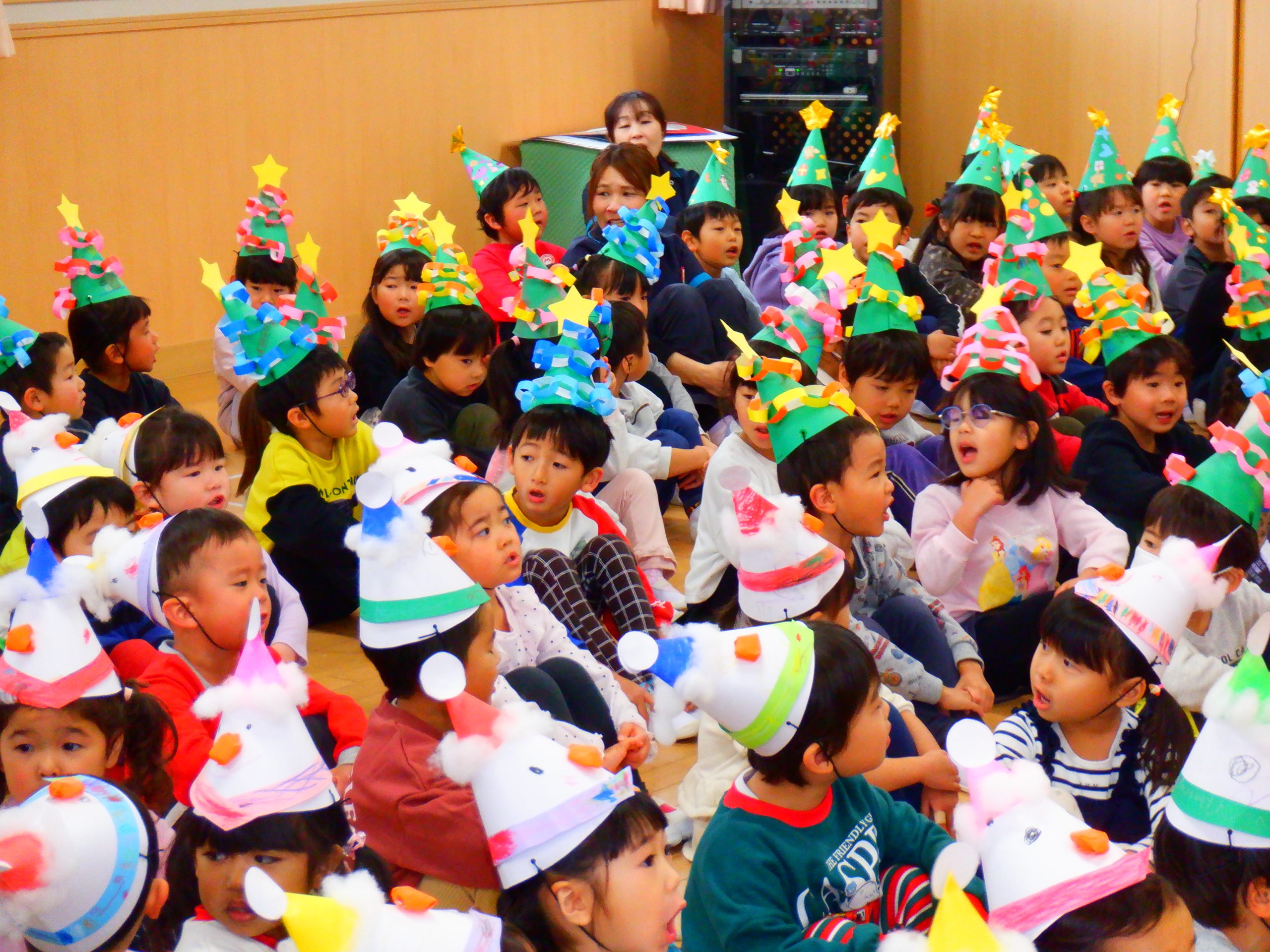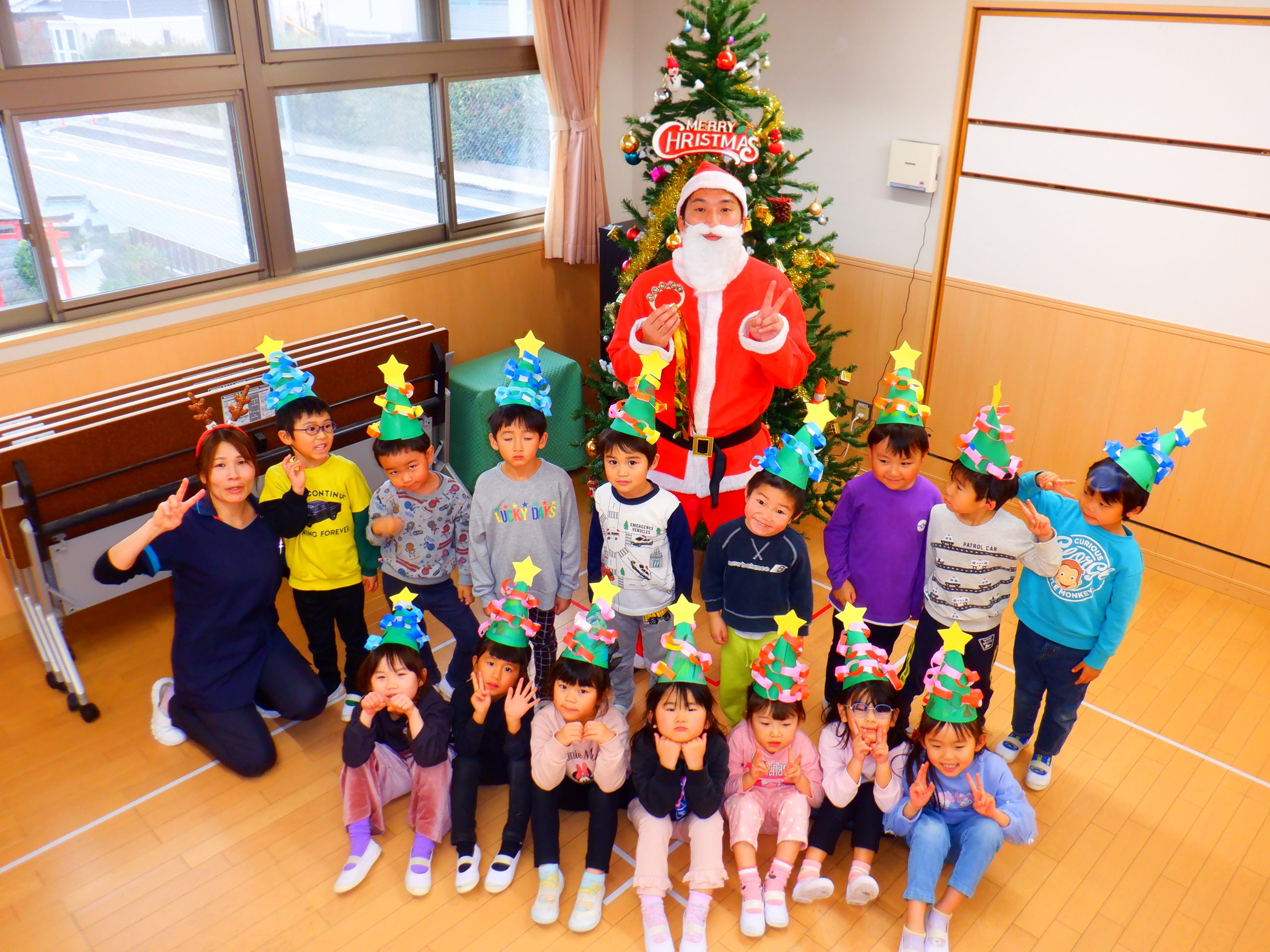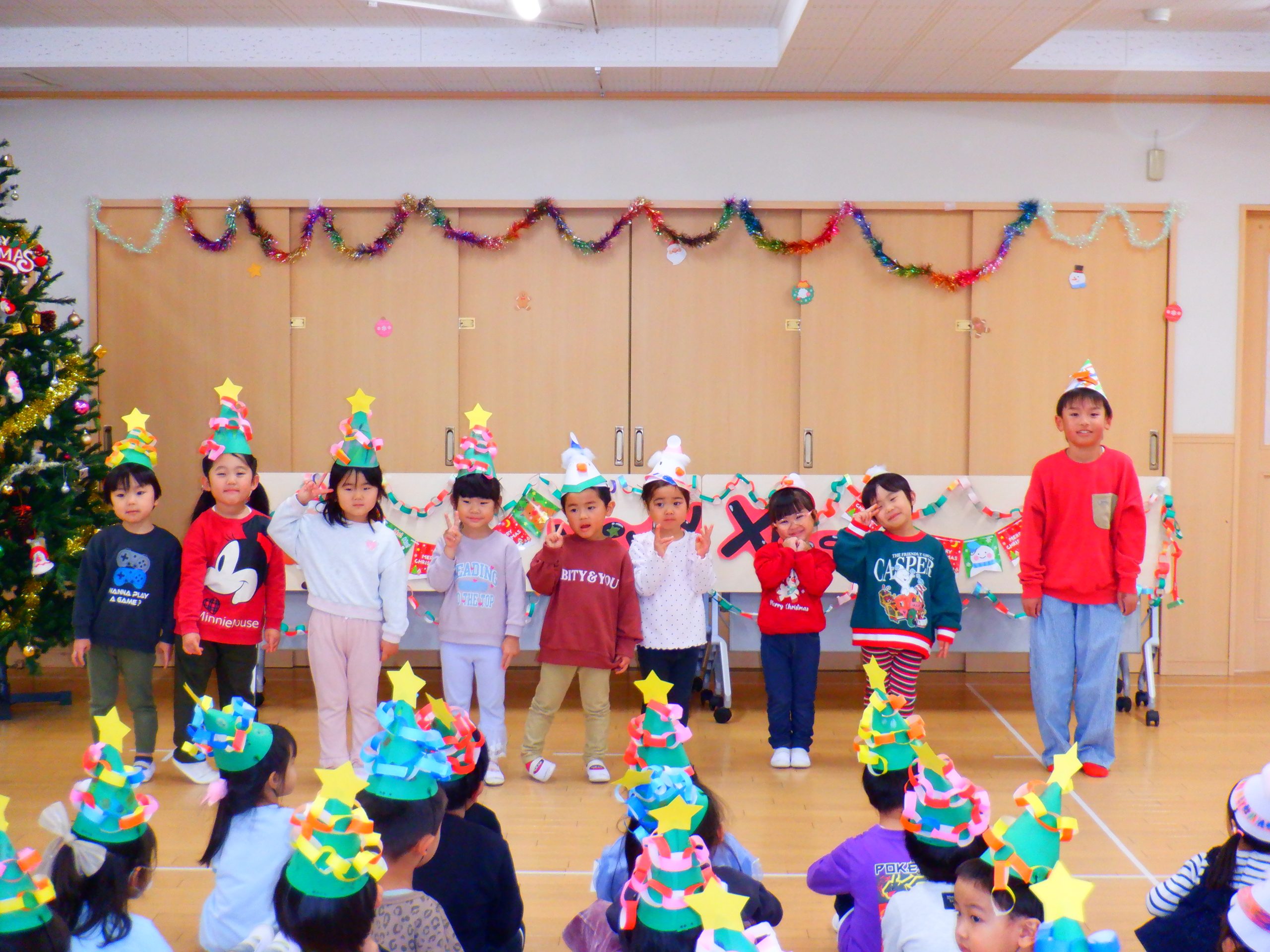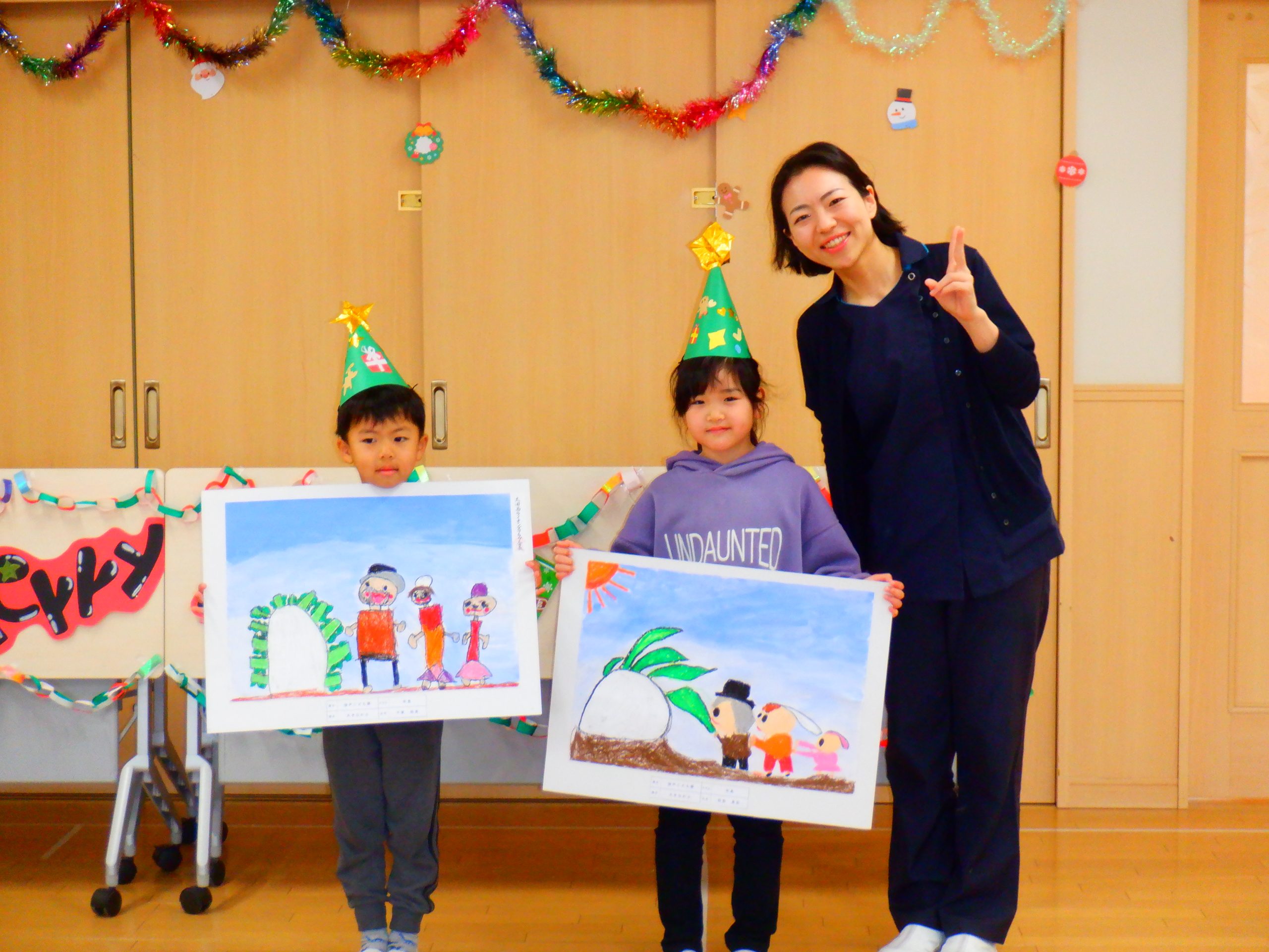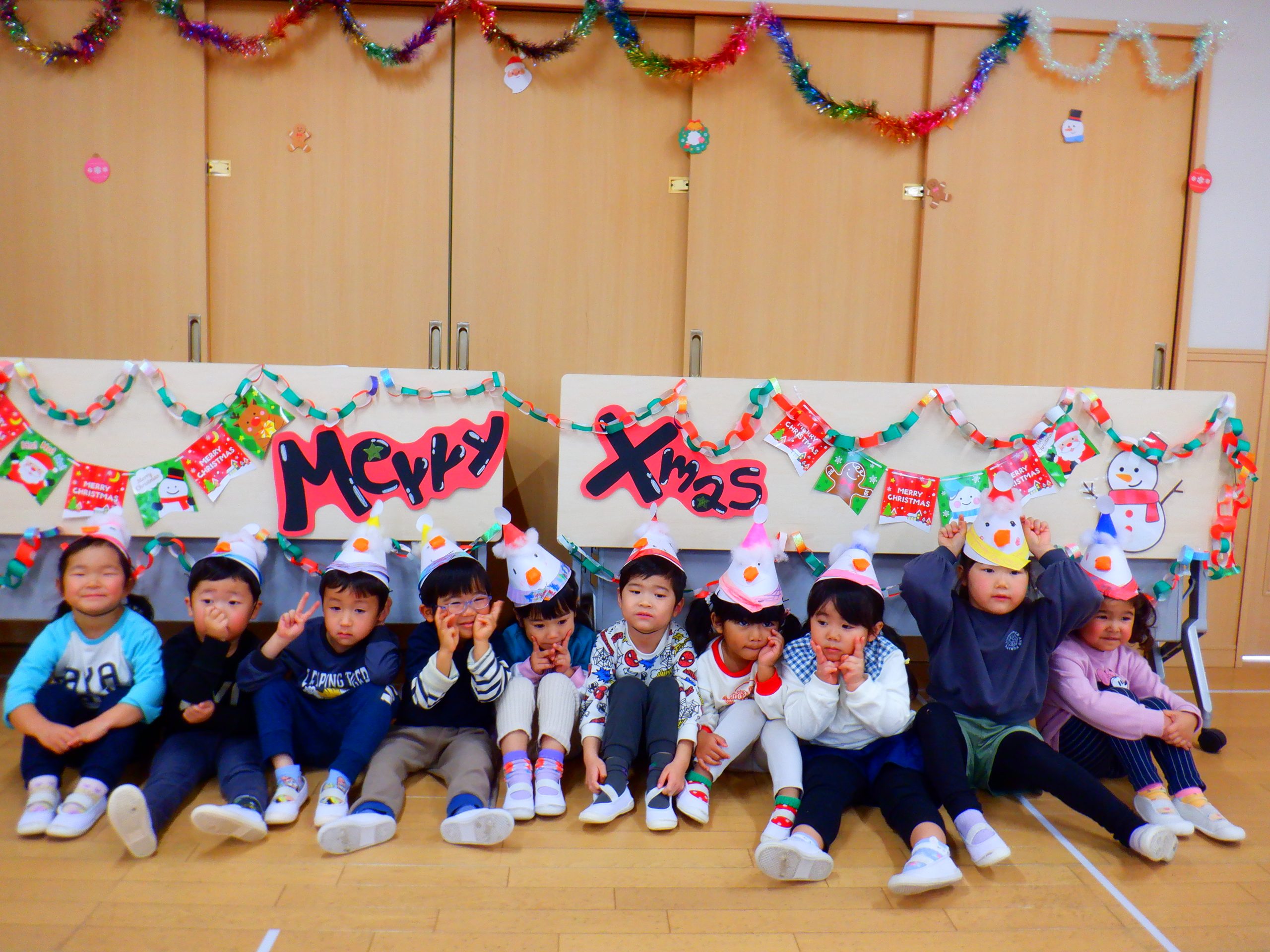 今日は、みんなの楽しみにしていたクリスマス会を行いました。学童さんのダンスや先生のハンドベルなど楽しい催し物の後は、サンタさんからプレゼントをもらいました。