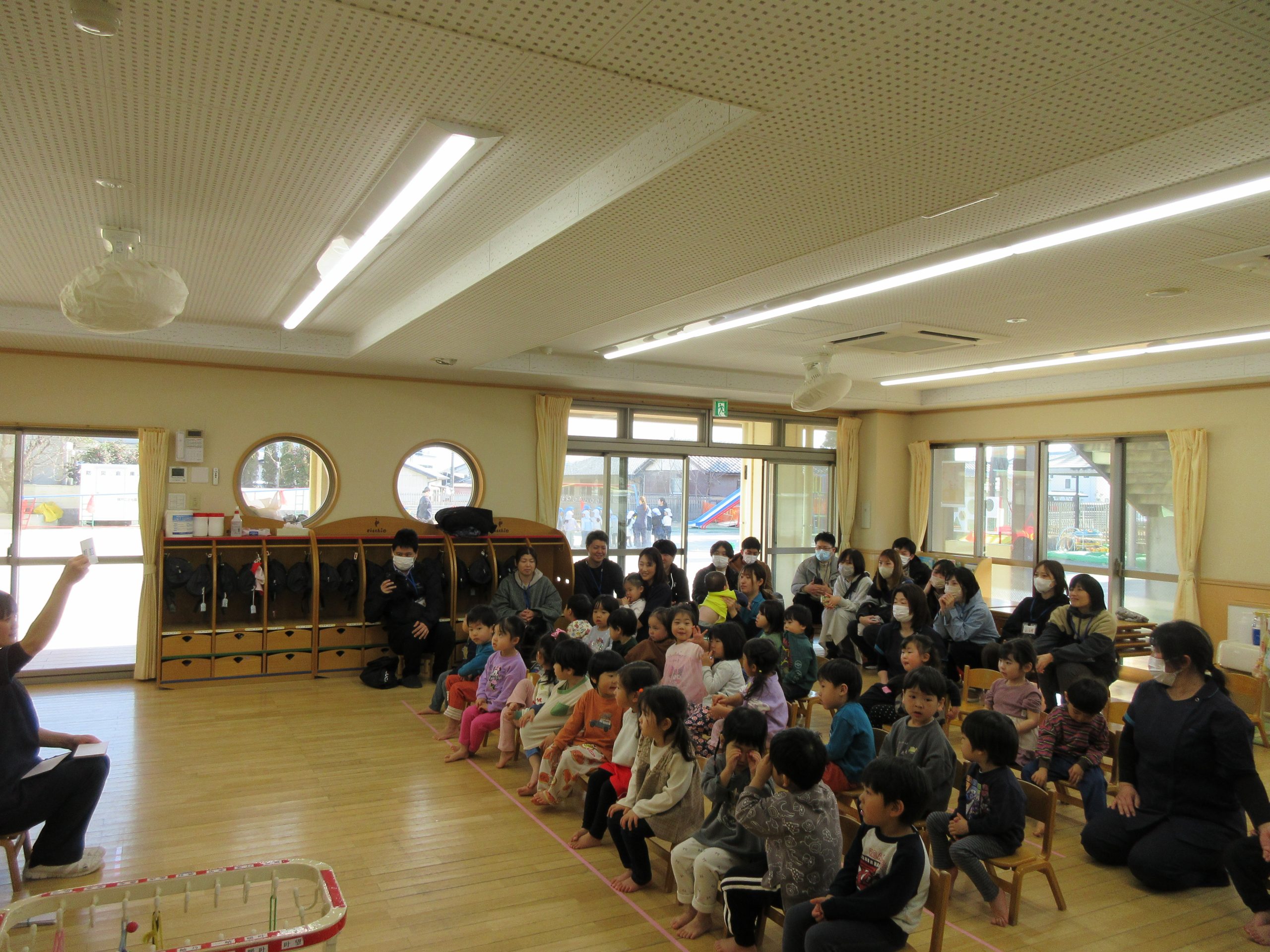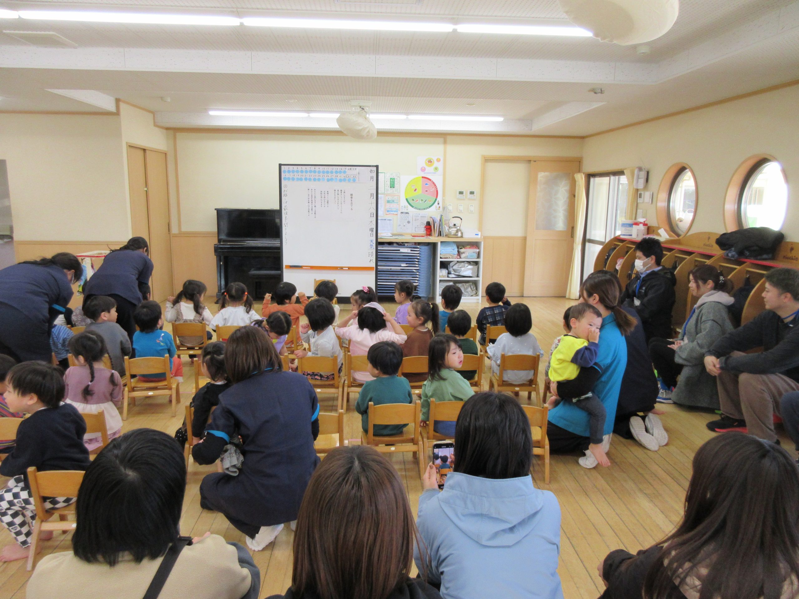 今日は、年中児と2歳児の保育参観が行われました。日頃の保育の様子や給食など、頑張る姿を保護者の皆様に観ていただけたかと思います。