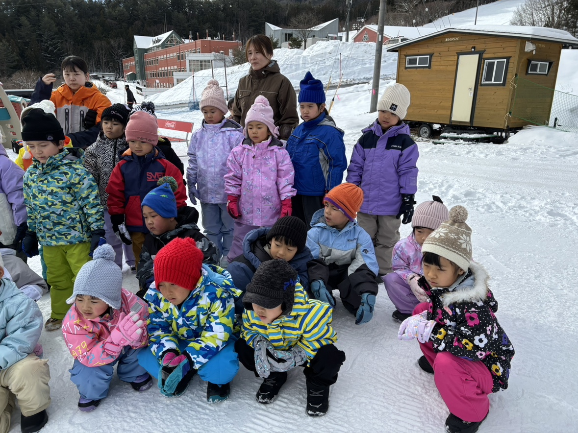 スキー場に到着しました。そりの安全な遊び方を教えていただきます。