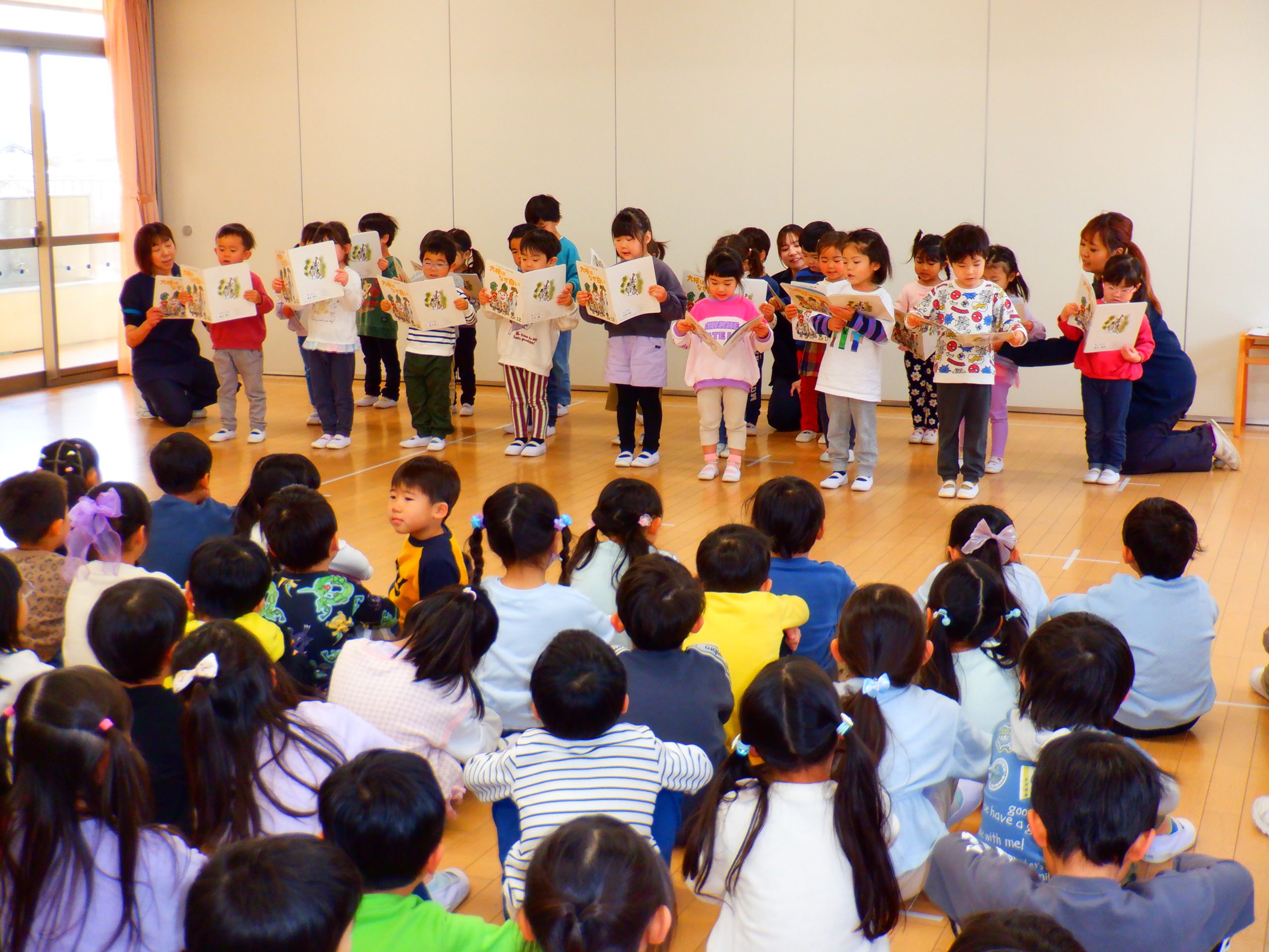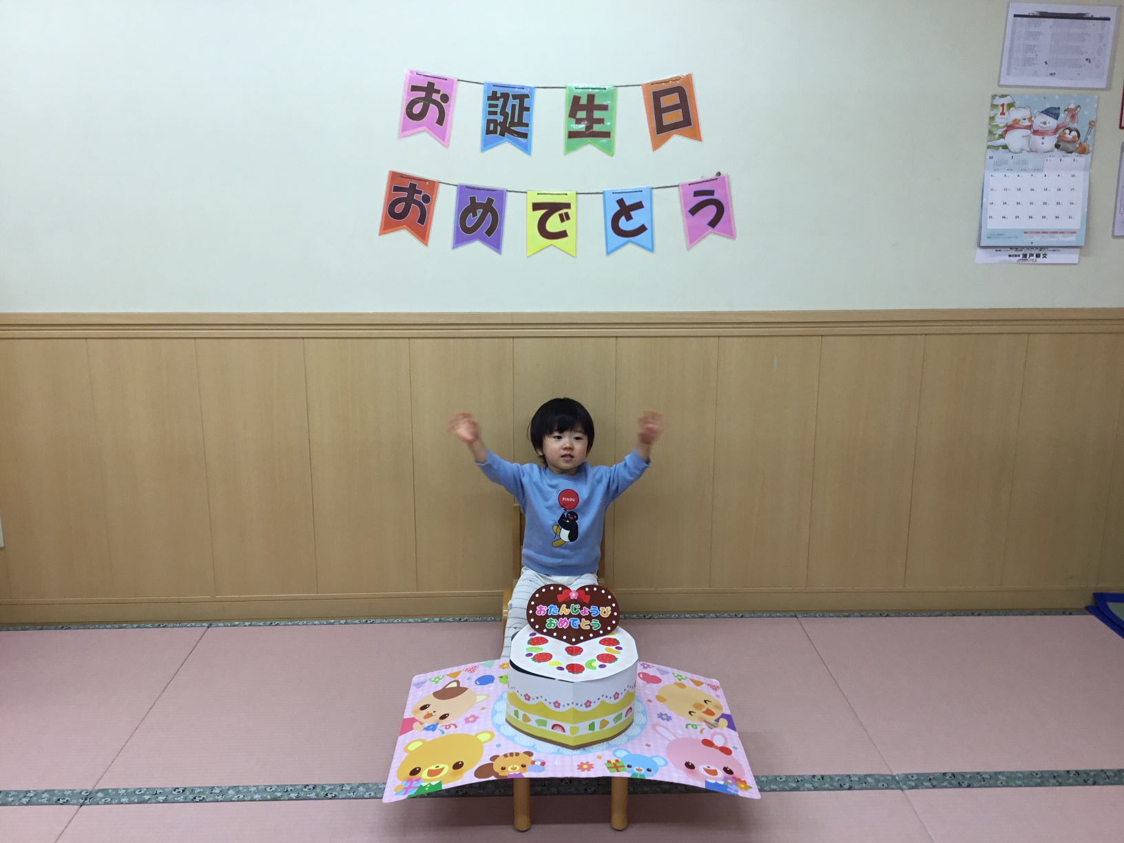 今日は、避難訓練のあと1月生まれのお友達の誕生会が行われました。楽しい催し物がたくさんの誕生会となりました。
